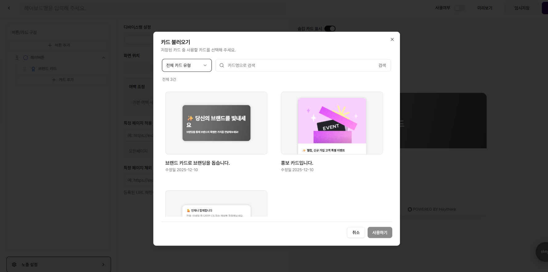 카드를 개별적으로 만들고, 헤이 보드에 활용 중인 카드를 관리할 수 있어요.