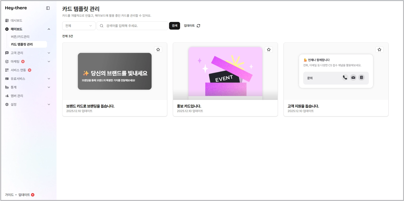 [헤이보드]에 사용할 다양한 카드 템플릿을 확인할 수 있어요.