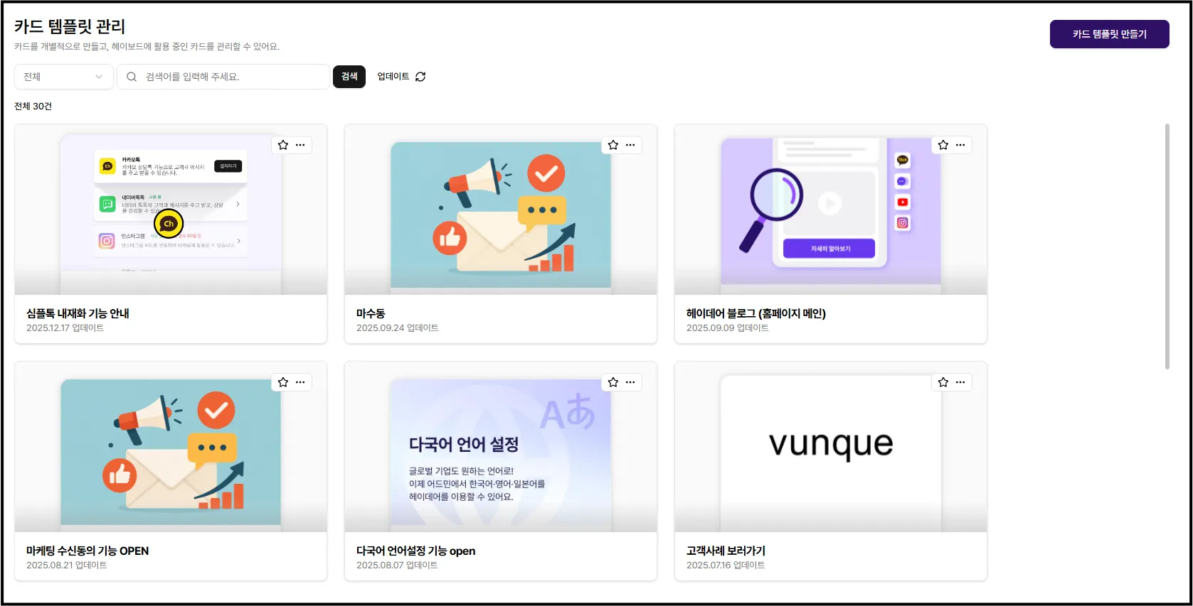 카드템플릿 관리: 리스트 형태에서 썸네일 형태로 디자인 변경