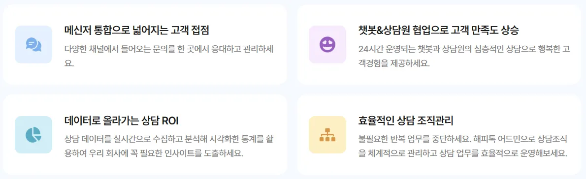 해피북을 참고하여 해피톡을 정확히 이해하고 활용하면 상담 품질 향상과 업무 효율 개선에 큰 도움이 됩니다.