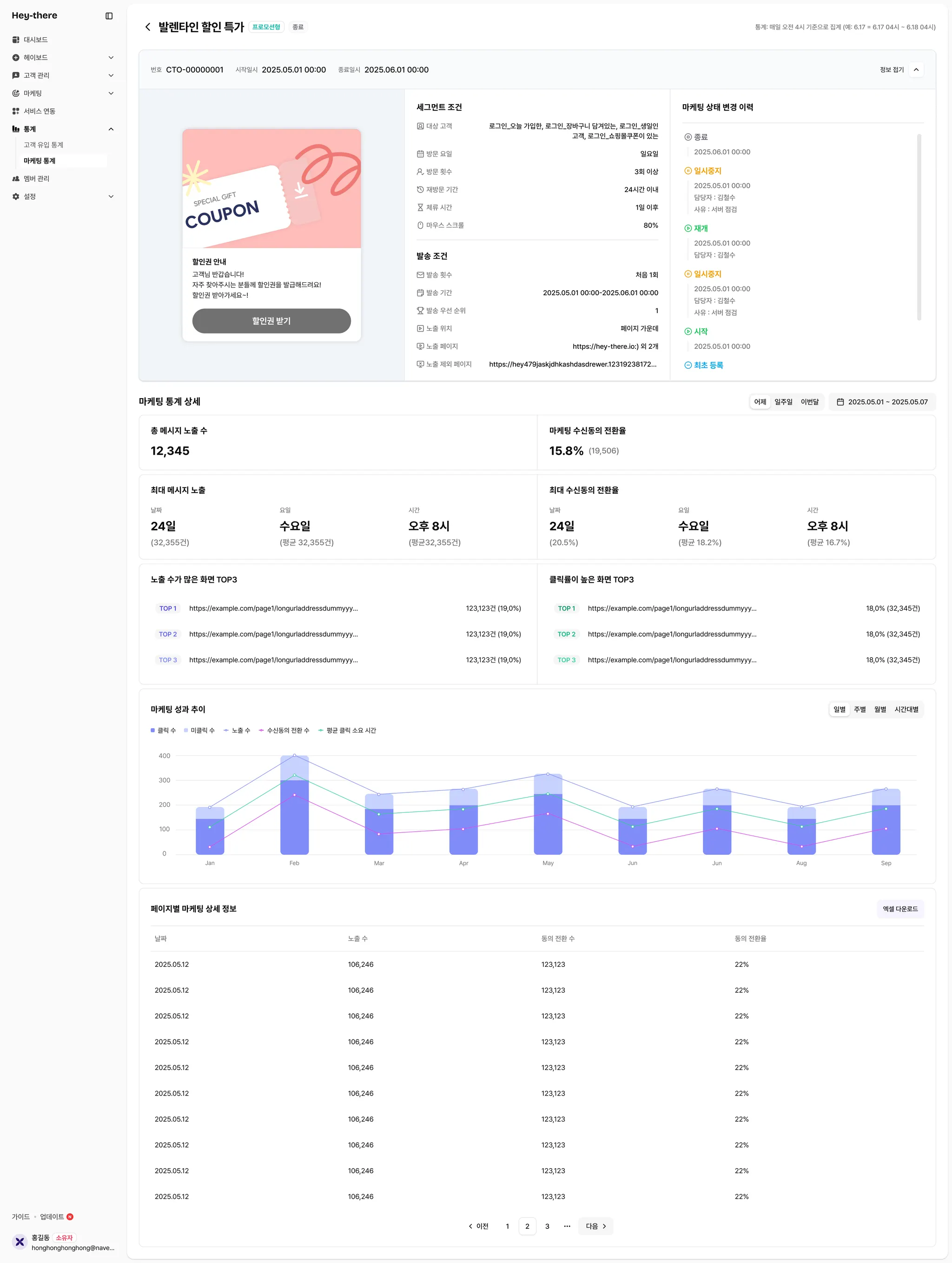 특정 마케팅의 상세 통계 정보를 보고 마케팅 성과를 분석할 수 있어요.