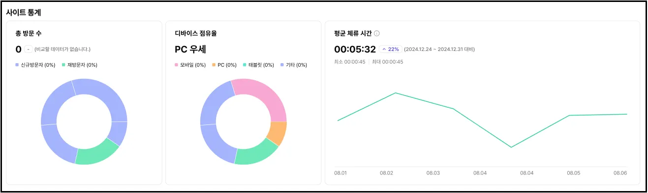 고객 유입 통계는 실시간 통계가 아닌 전 일까지의 통계 데이터까지만 확인할 수 있어요.