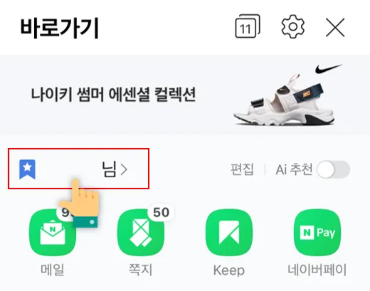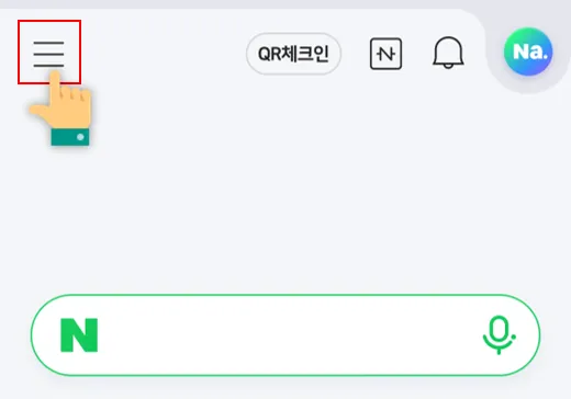 1. 네이버 앱 첫 화면 좌측 상단의 아이콘을 탭 해주세요.