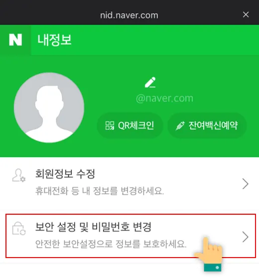 3. 내정보 화면에서 '보안 설정 및 비빌번호 변경'을 탭 해주세요.