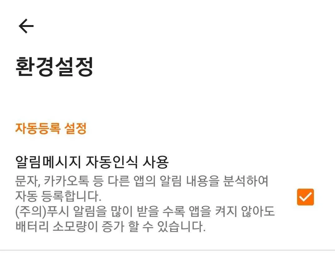 3. 알림 메시지 자동 인식 등록(안드로이드에서만 제공되는 기능)