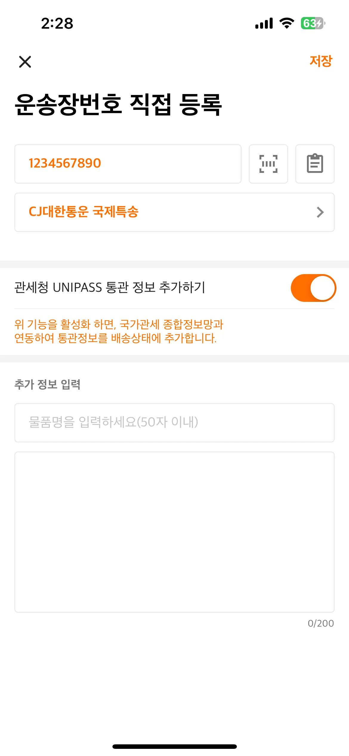 2. 운송장정보 직접입력