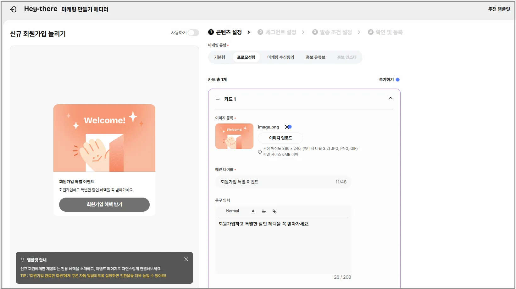 신규 회원에게만 제공되는 전용 혜택을 소개하고, 이벤트 페이지로 자연스럽게 연결해 보세요.