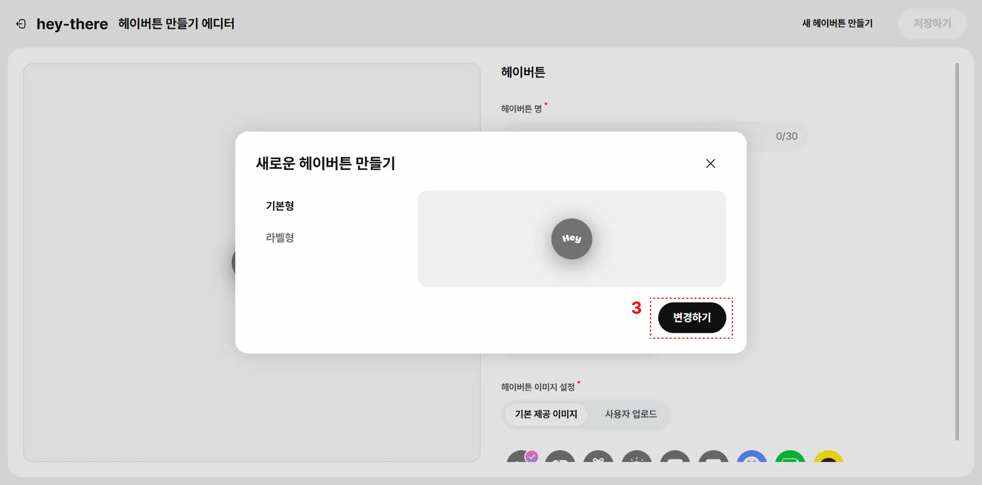 클릭 시, [새 헤이버튼 만들기] 팝업이 노출돼요.