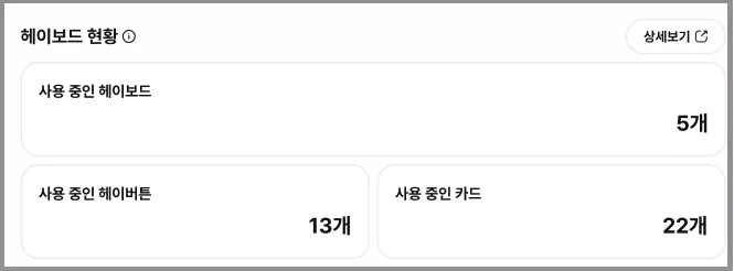 [상세보기]를 통해 [헤이 보드 관리]페이지로 바로 이동할 수 있어요.