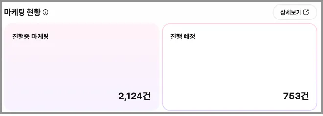[상세보기]를 통해 [마케팅 현황]페이지로 바로 이동할 수 있어요.
