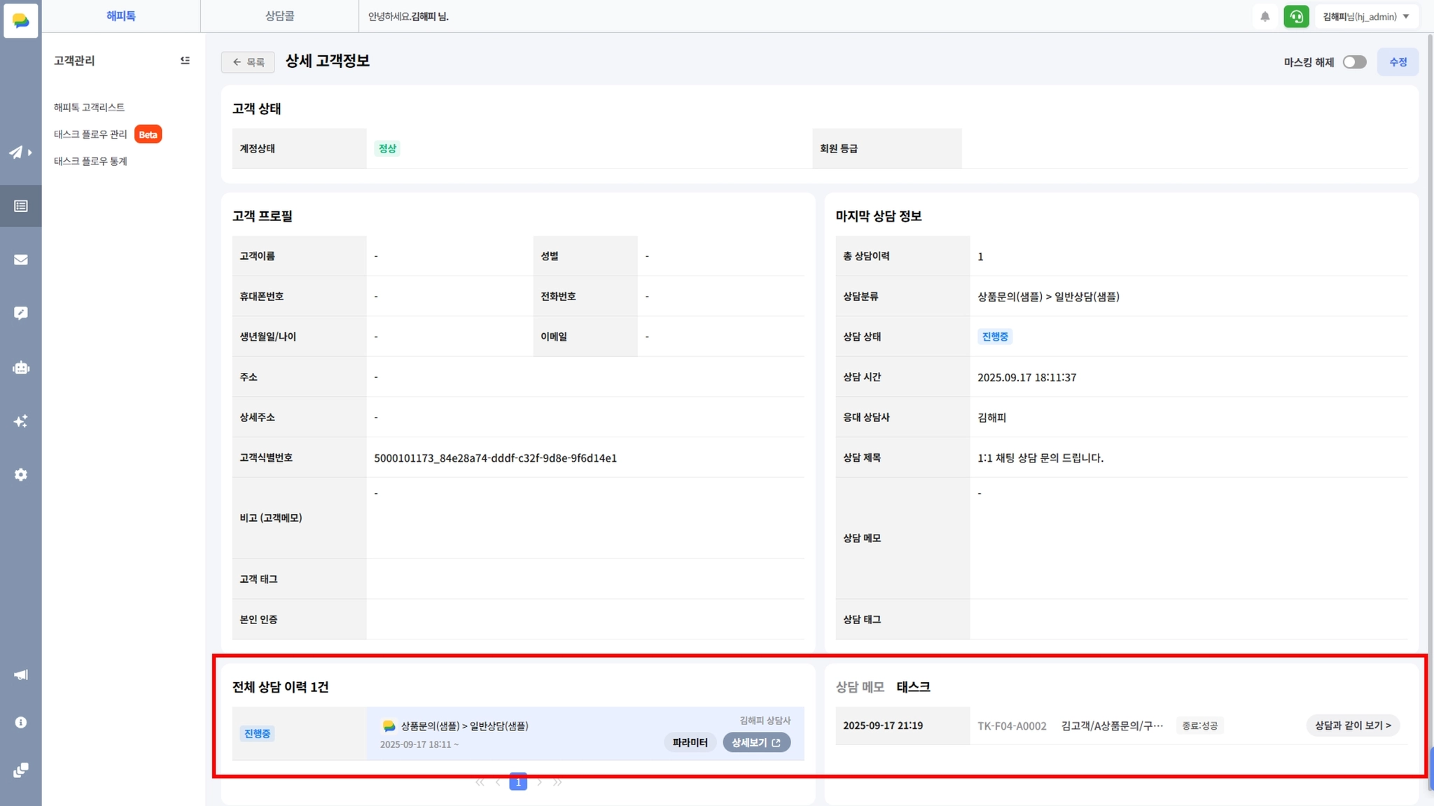 1) 상담별 태스크 확인