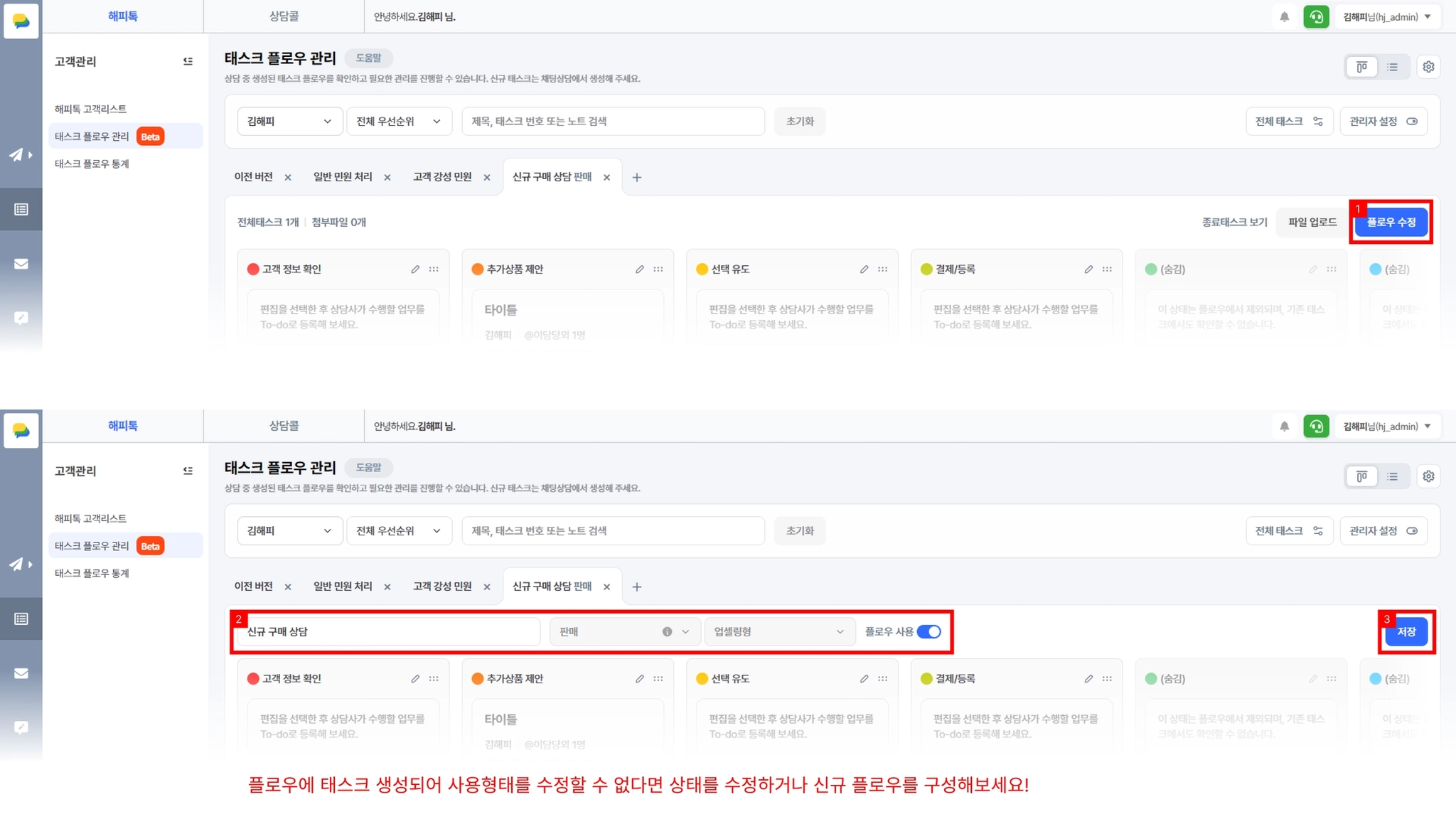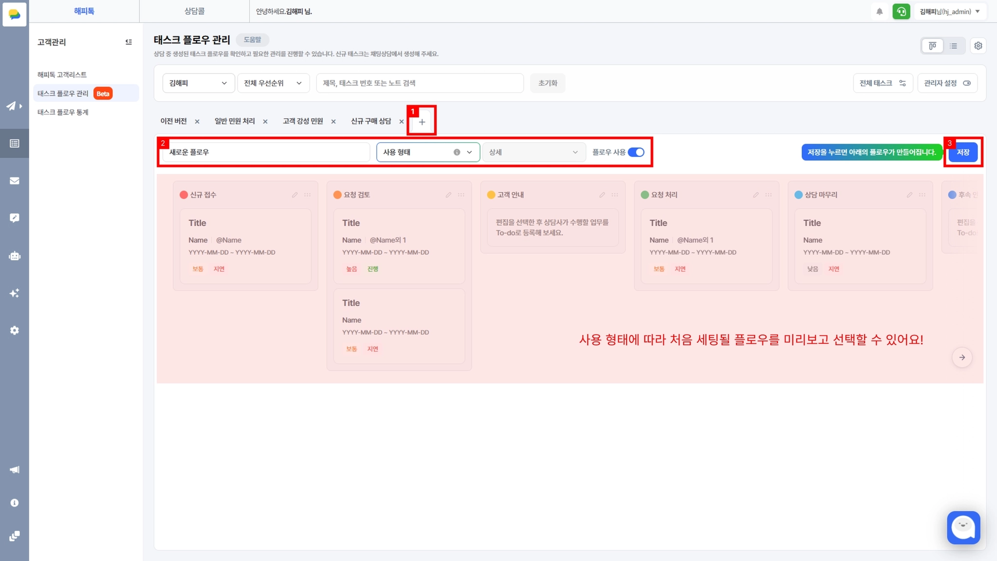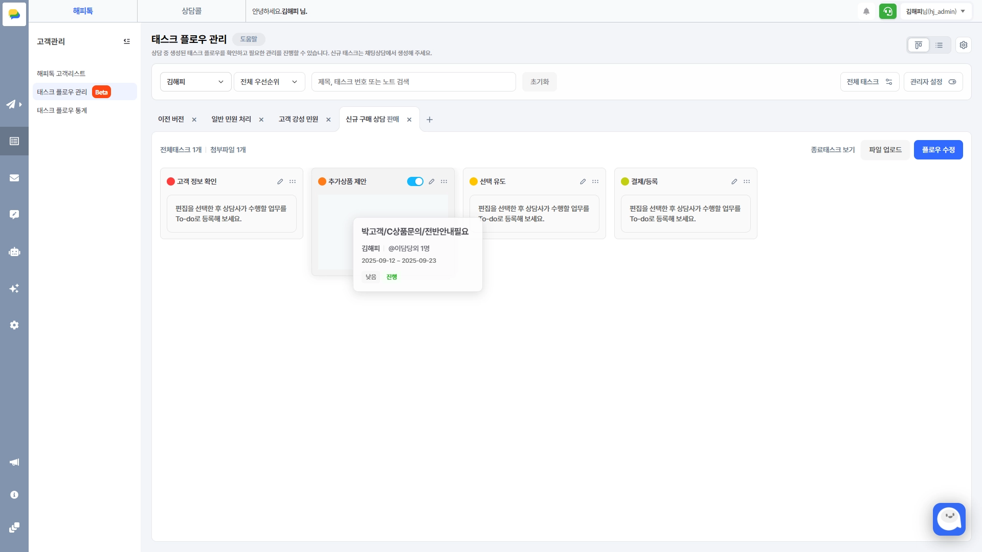 상담관리 > 태스크 플로우 관리