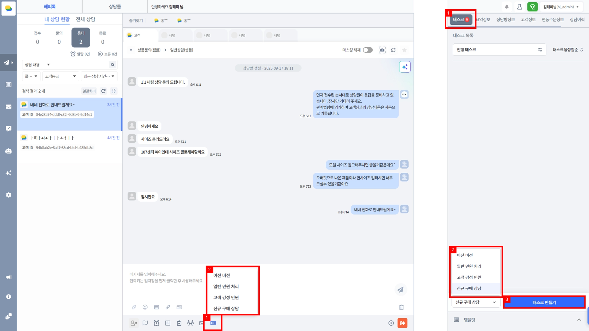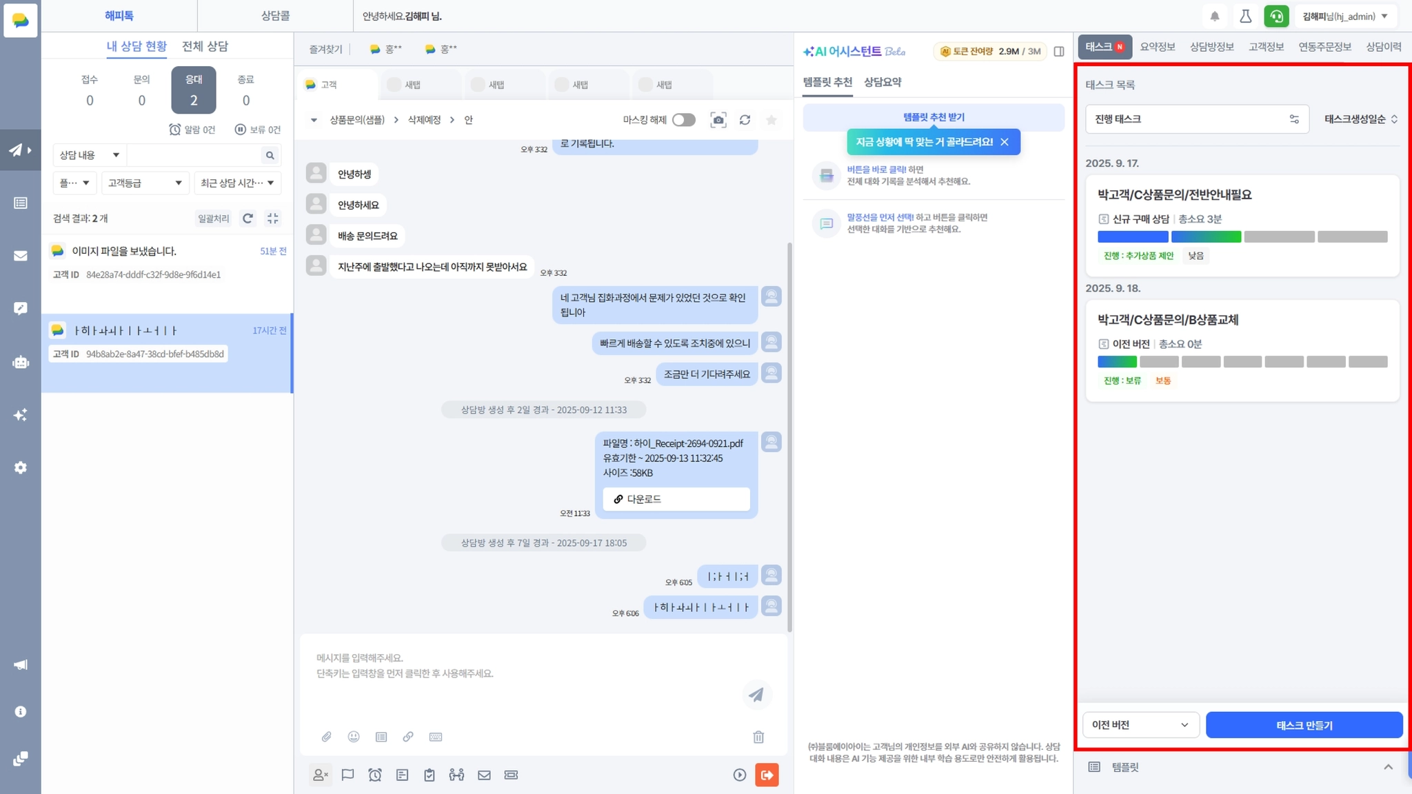 상담사 : 본인 태스크
