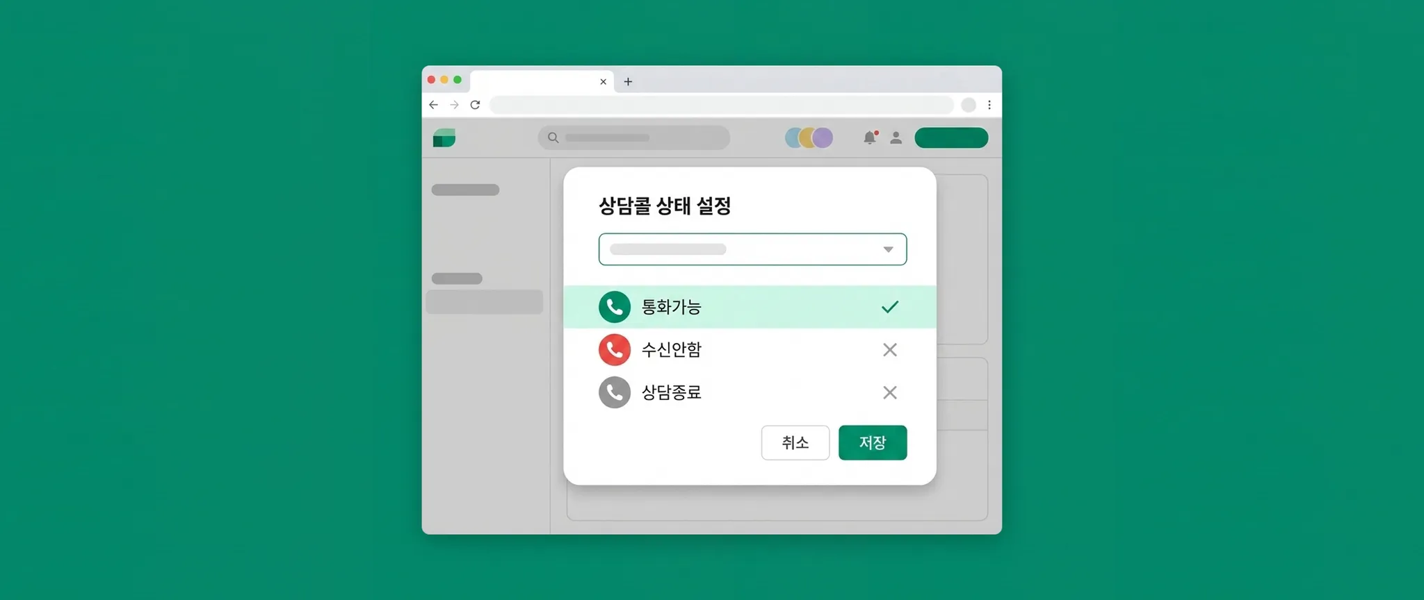 콜 수신이 가능한 상태인 경우 초록색으로 표시됩니다.