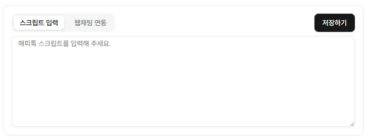 해피톡 스크립트를 ‘스크립트 입력’란에 입력 후 저장해주세요.