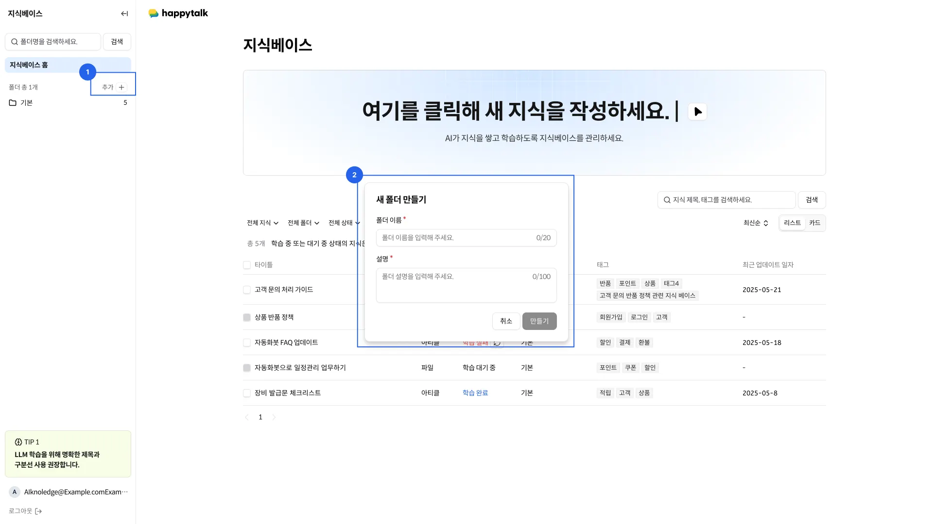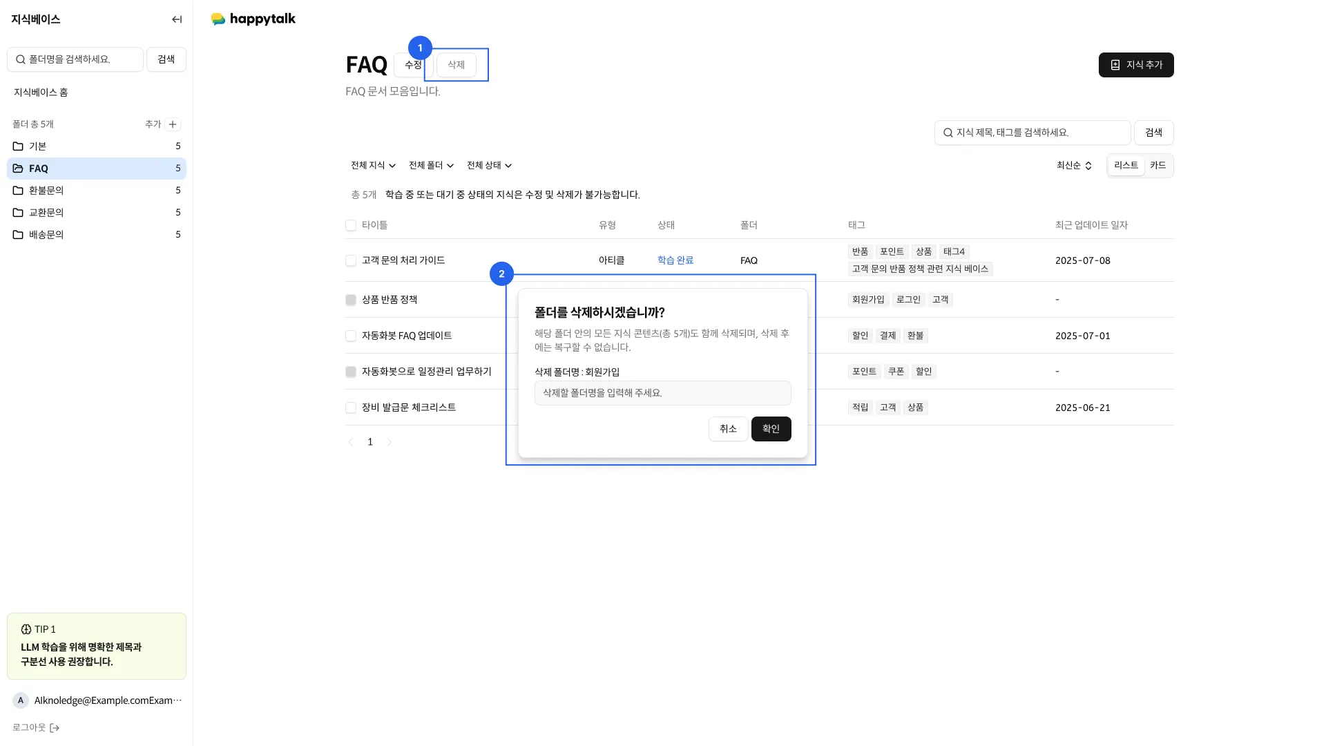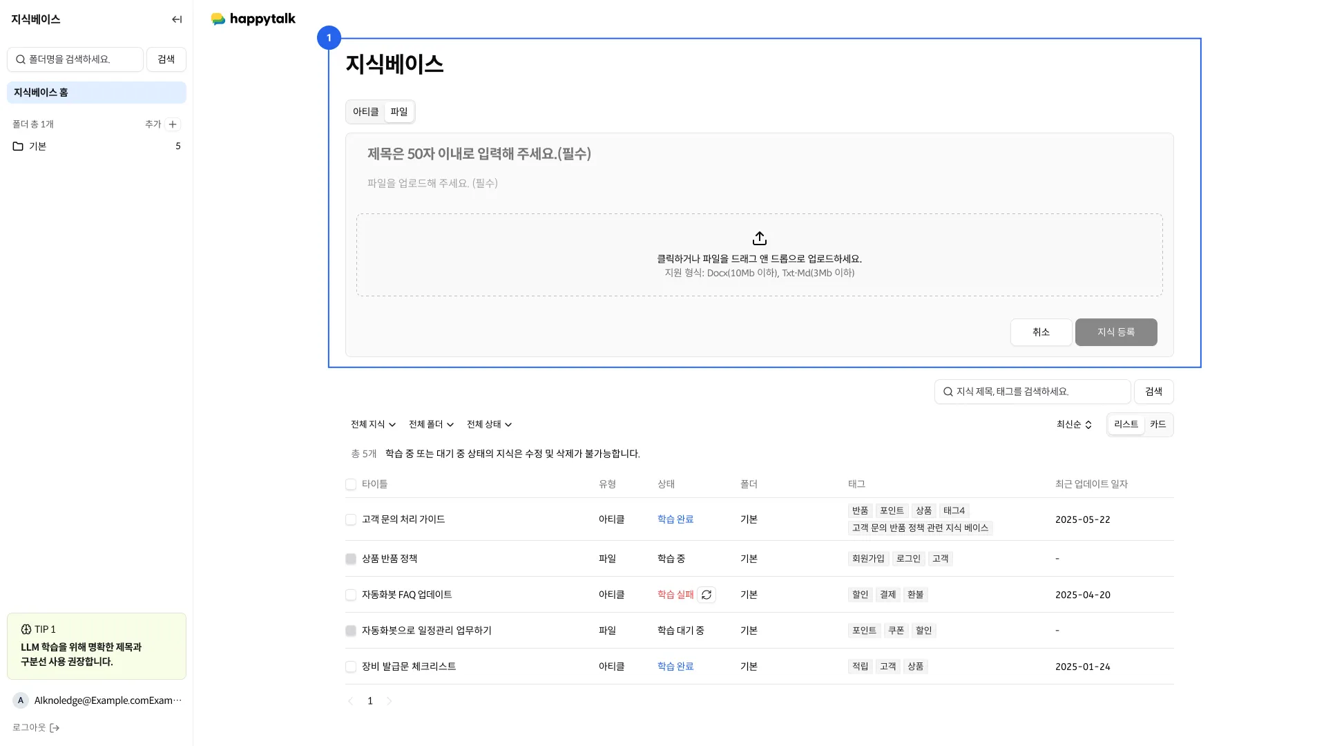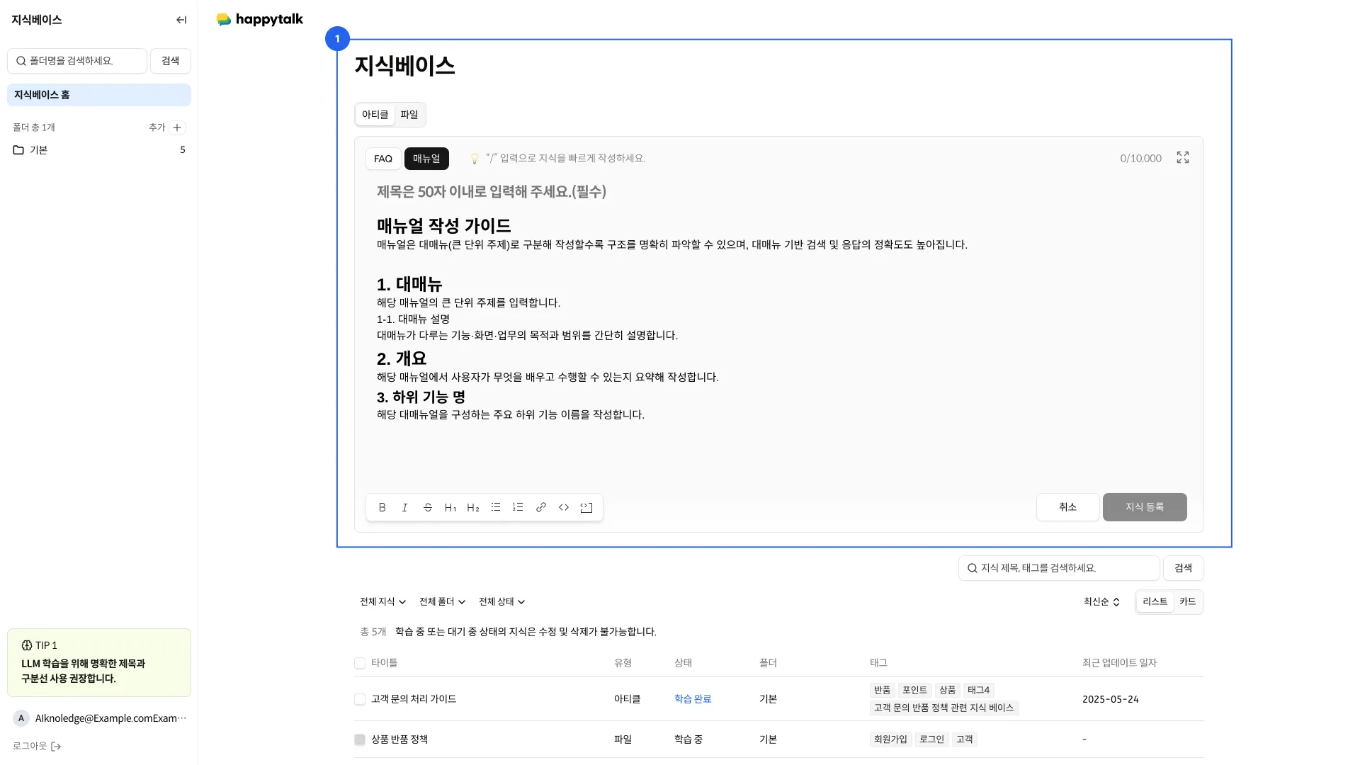 지식베이스에 등록된 모든 지식을 조회하고 관리할 수 있습니다.