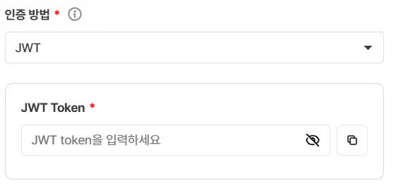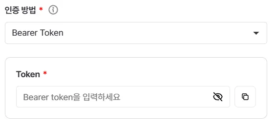 Token | - 외부 시스템에서 발급받은 토큰 값을 입력합니다.- 긴 문자열 형태의 토큰을 그대로 입력 |