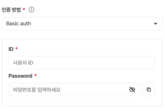선택한 인증 방법에 따라 입력해야 하는 항목이 달라집니다.