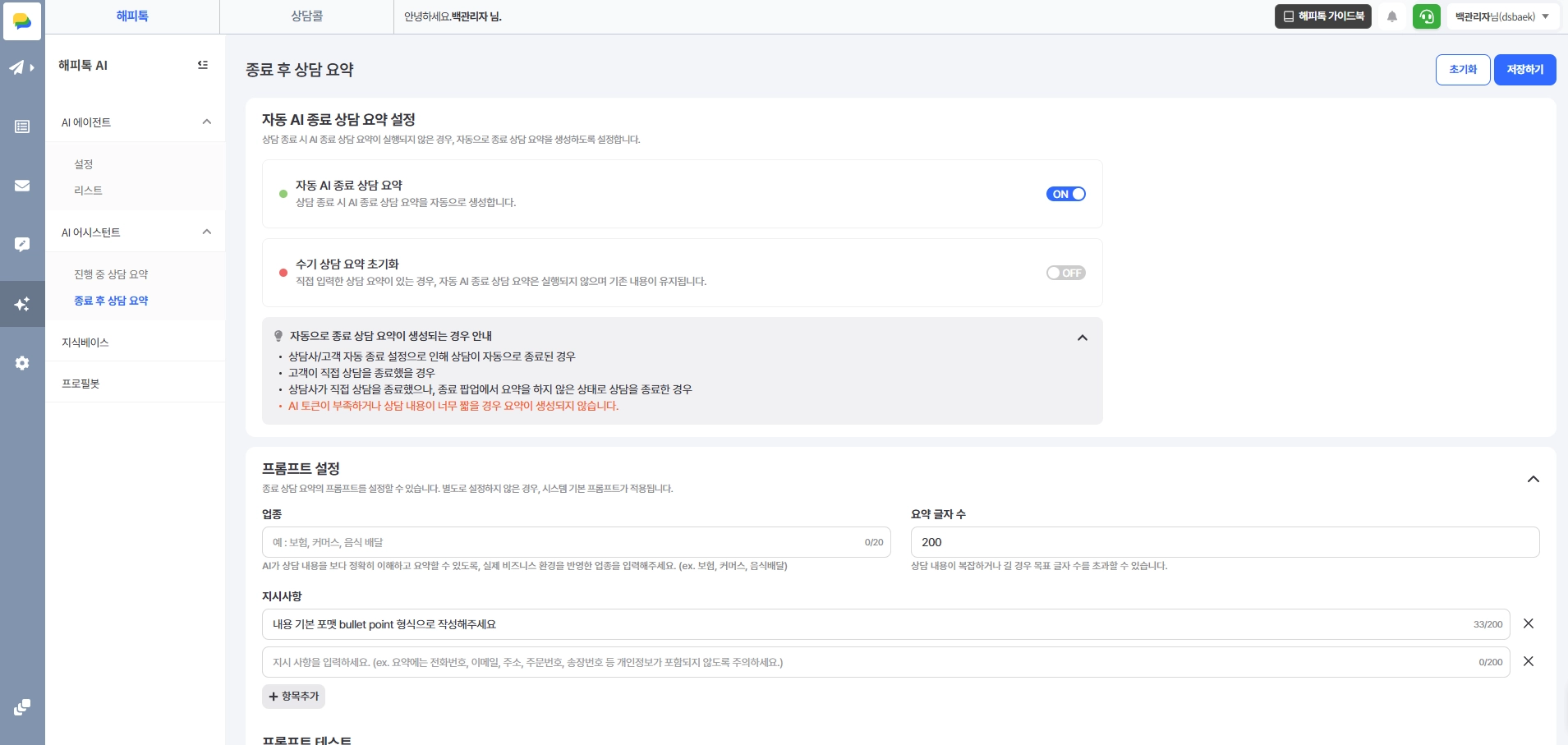 해피톡 AI > AI 어시스턴트 > 종료 후 상담 요약