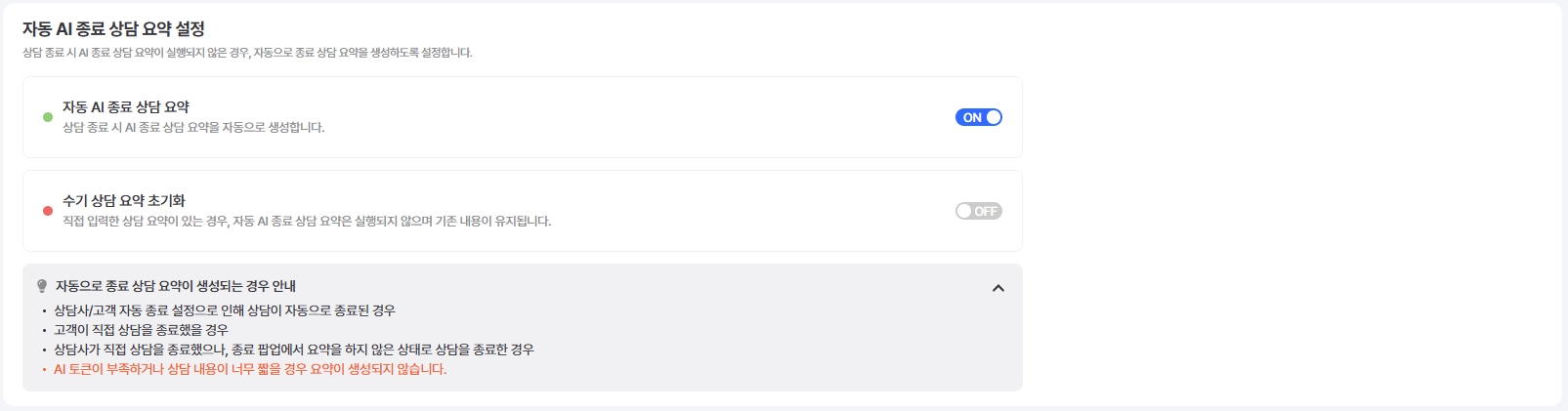 ON: 상담 종료 시 자동으로 요약이 생성됩니다.