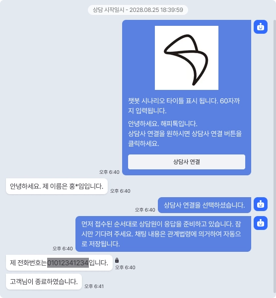 상담사 : 챗봇은 ‘챗봇’으로 표시