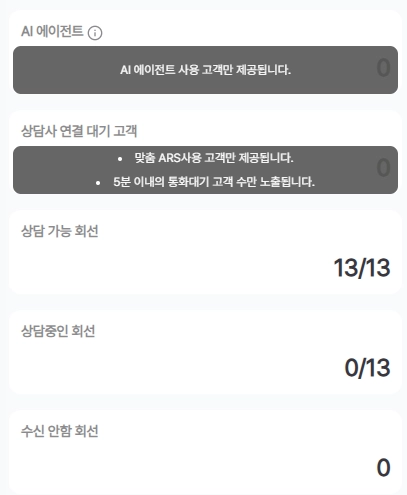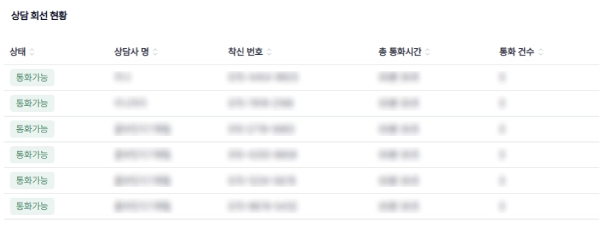 상담사 및 상담사 번호 기준으로 상세 회선 상태를 확인할 수 있습니다.