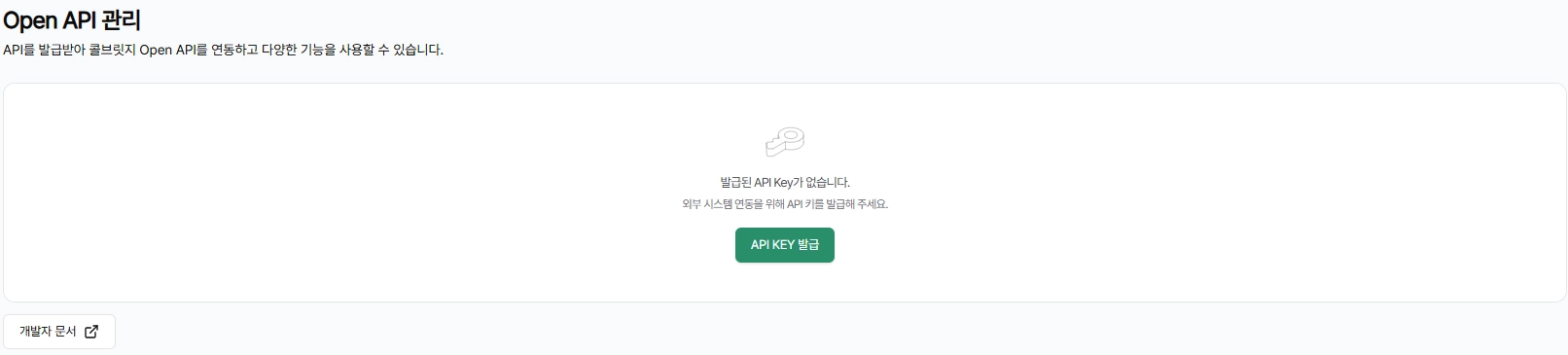 콜브릿지 관리자 페이지에서 API Key를 발급할 수 있습니다.