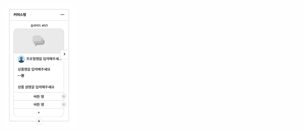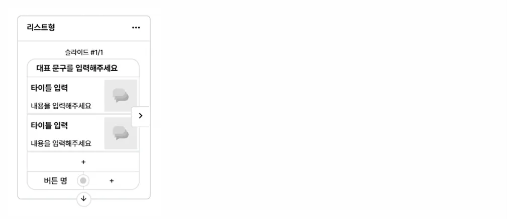지원 유형: 텍스트형 / 카드형 / 커머스형 / 리스트형