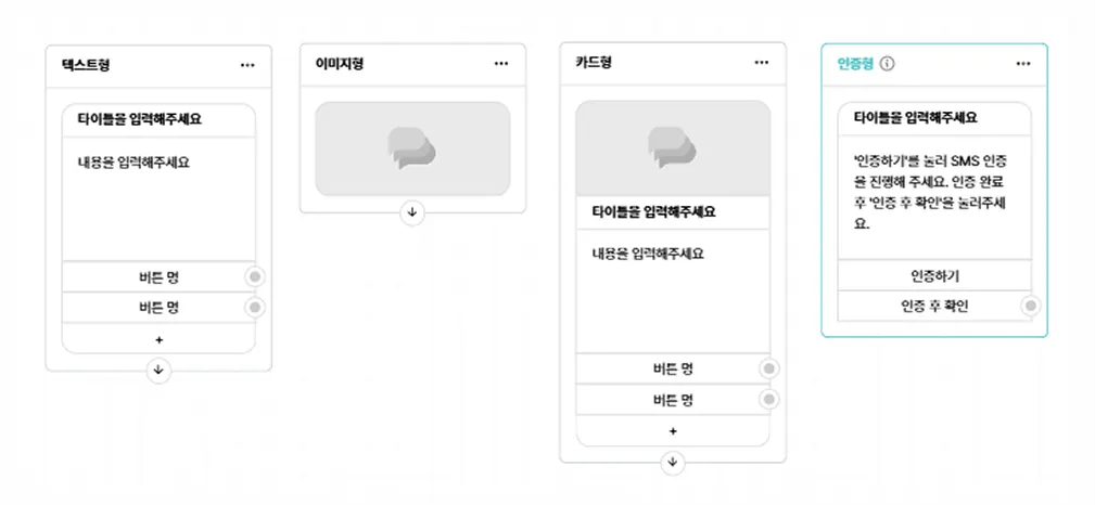 지원 유형: 텍스트형 / 이미지형 / 카드형 / 인증형