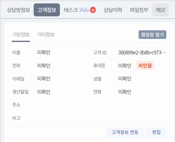 고객의 기본 정보, 상담방 정보, 과거 상담 이력등을 확인하고