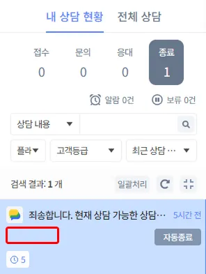 OFF 시 상담방 목록에 고객정보가 표시되지 않습니다.