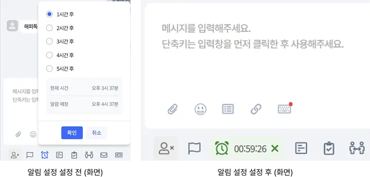 상담 중 특정 상담방에 알림 시간을 설정하여 관리할 수 있는 기능