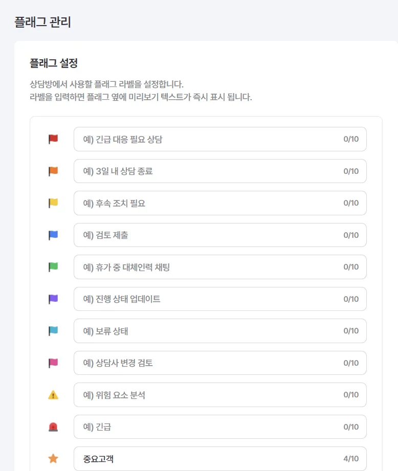 플래그 라벨 설정 방법 : [설정] > [고급 설정] > [플래그 관리]