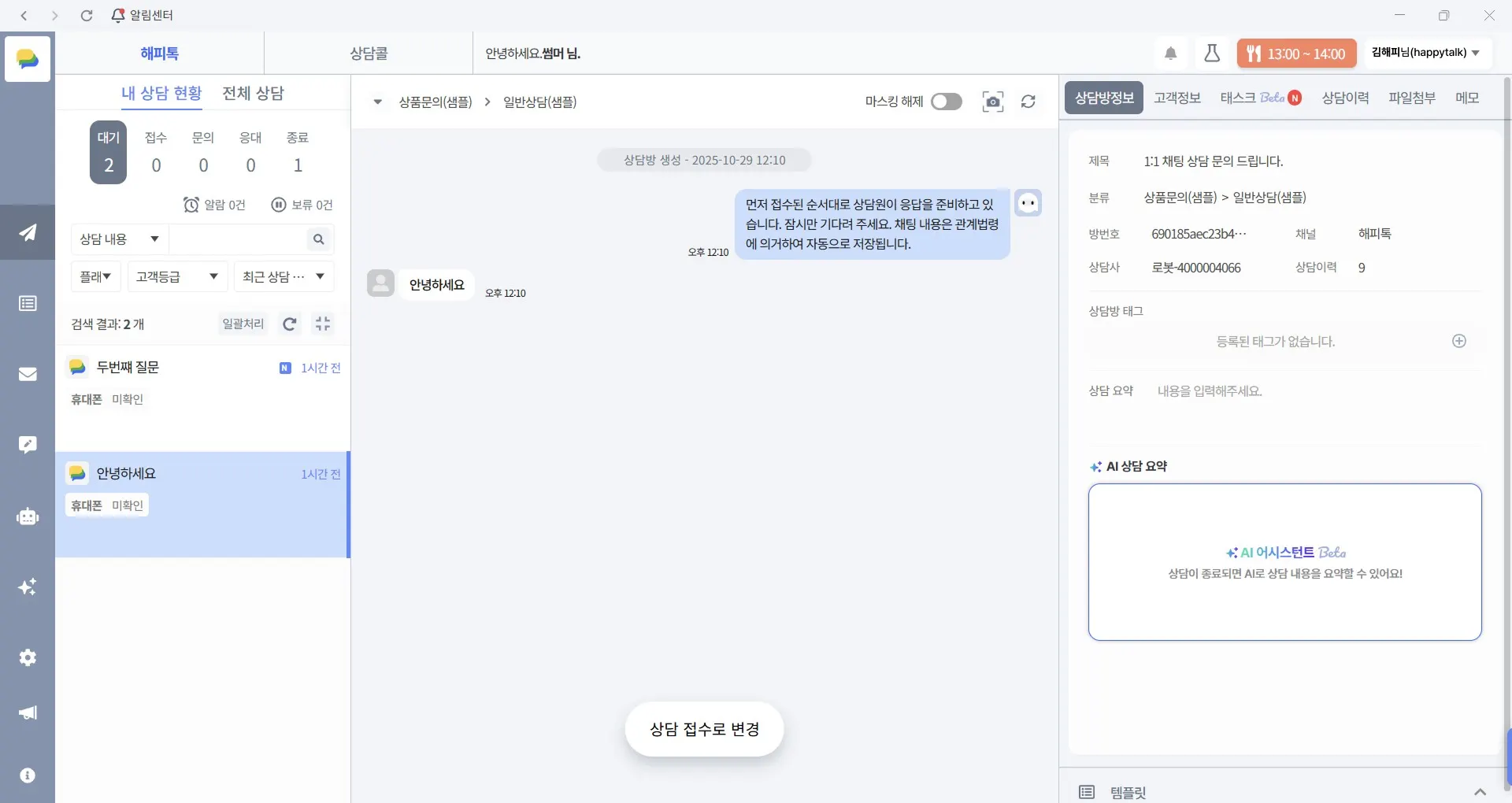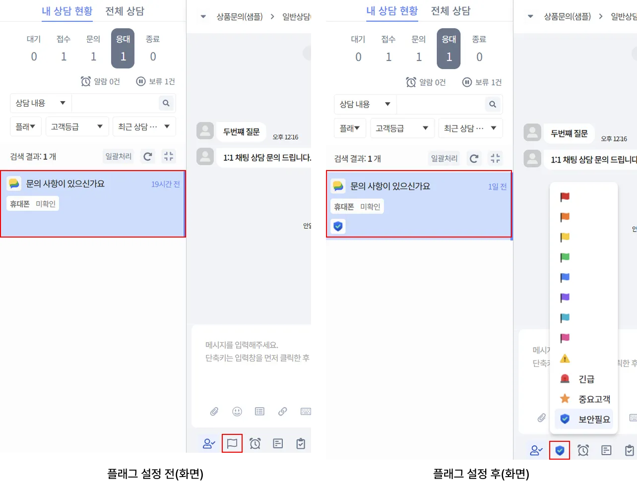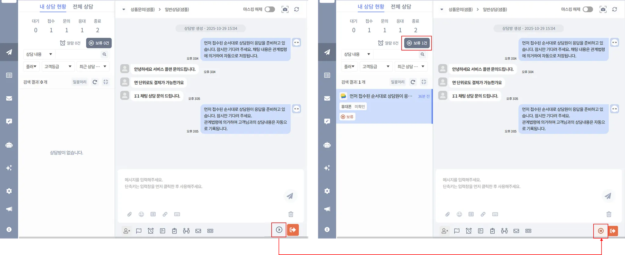 상담방의 알림과, 채팅을 종료 보류 시킬 수 있는 기능입니다.