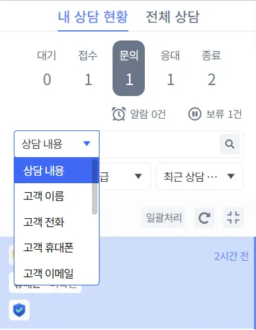 진행 중인 상담이 많을 때, 특정 상담을 찾기 편리한 기능