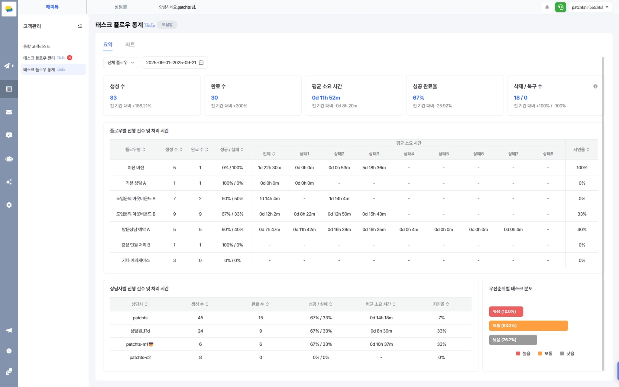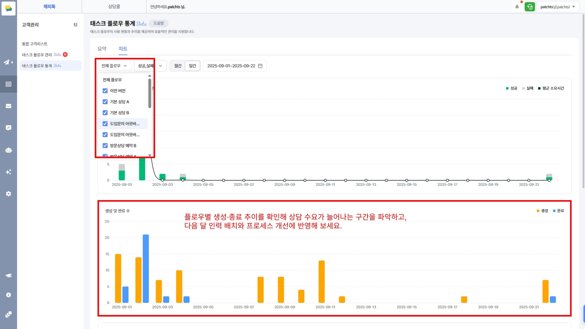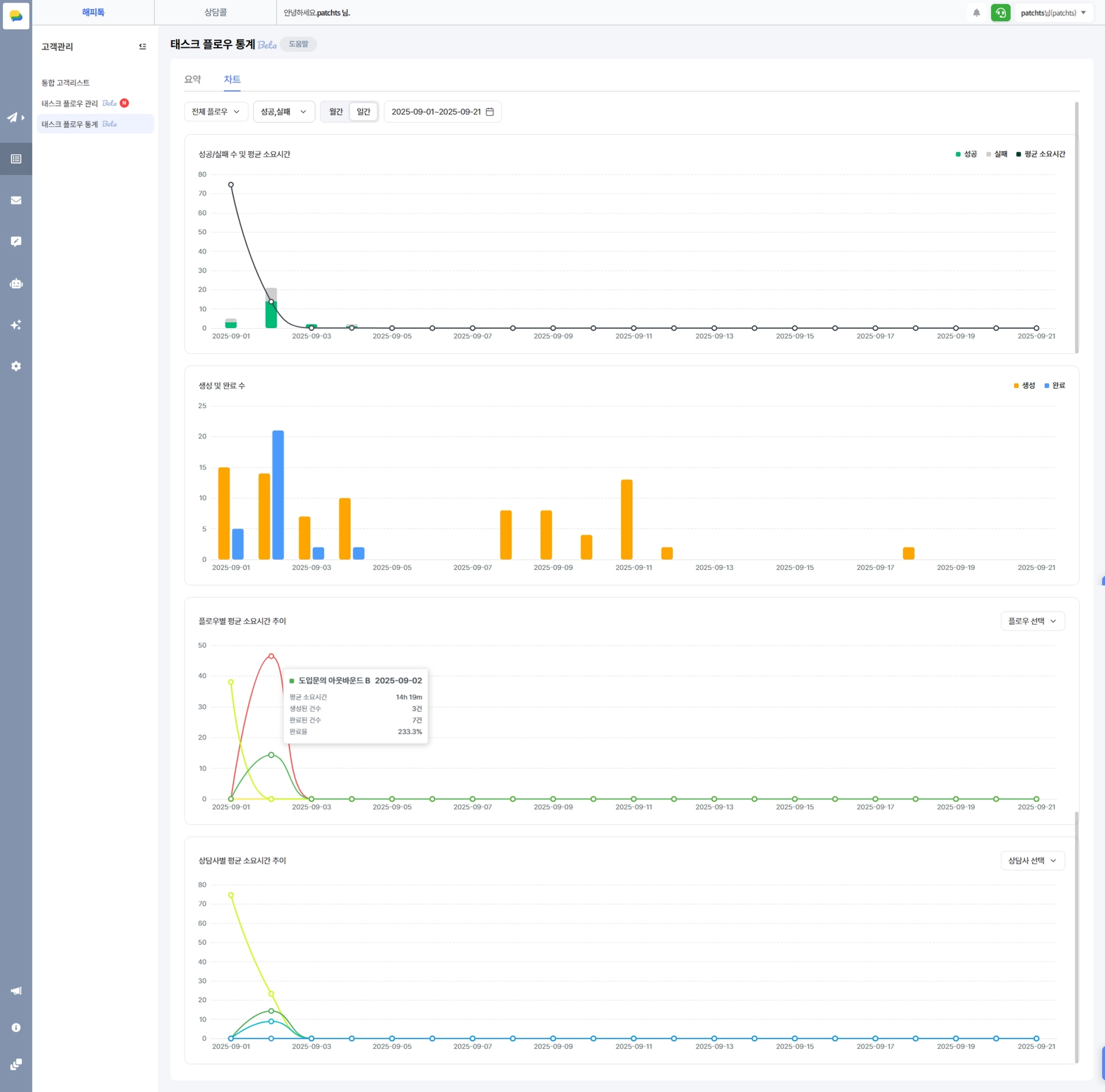 고객관리 > 태스크 플로우 통계