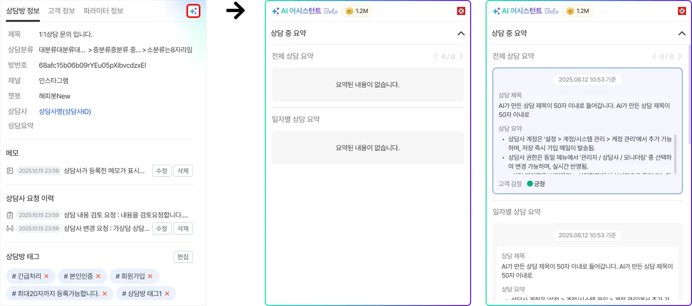 ‘오늘 요약’을 통해 고객 감정 흐름까지 확인 가능합니다.