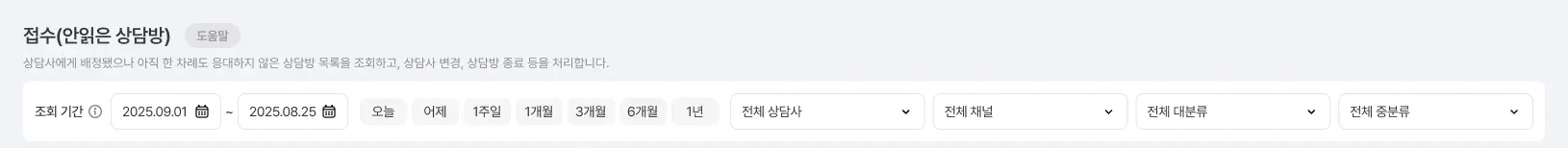 접수(안읽은 대화방)은 상담사에게 배정은 완료되었지만,