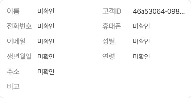 고객 기본정보가 없을 경우 ‘미확인’으로 표시