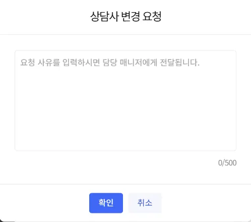 관리자는 자신이 담당하는 상담사가 아니더라도(=담당 매니저가 아니더라도) 모든 변경 요청 내역을 확인하고 변경할 수 있습니다.